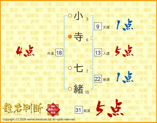 小寺七緒さんの総運は31画の5点!