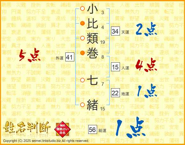 小比類巻七緒さんの総運は56画の1点!