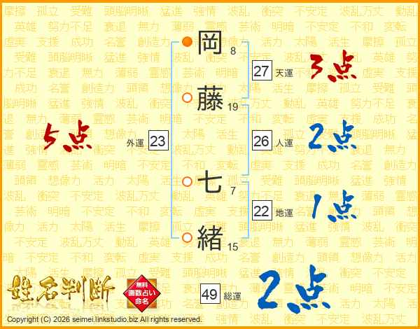 岡藤七緒さんの外運は23画の5点!