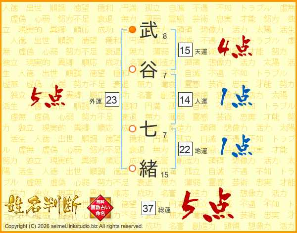 武谷七緒さんの総運は37画の5点!