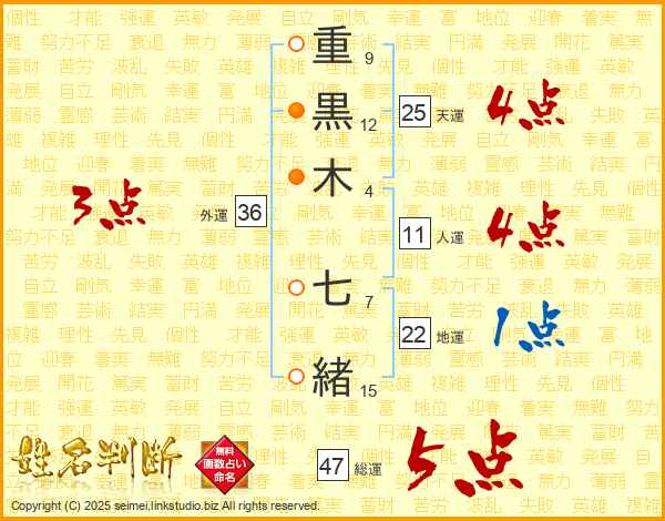 重黒木七緒さんの総運は47画の5点!