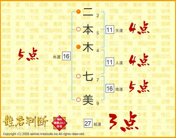 二本木七美さんの外運は16画の5点!