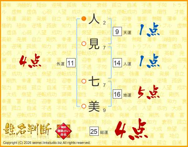 人(2画)見(7画) 七(7画)美(9画)