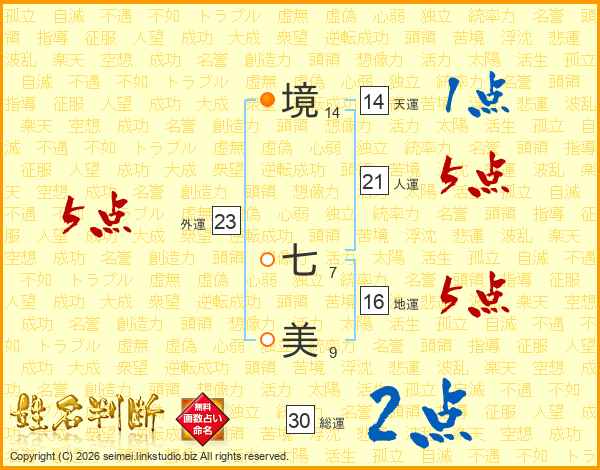 境七美さんの天運は14画の1点!