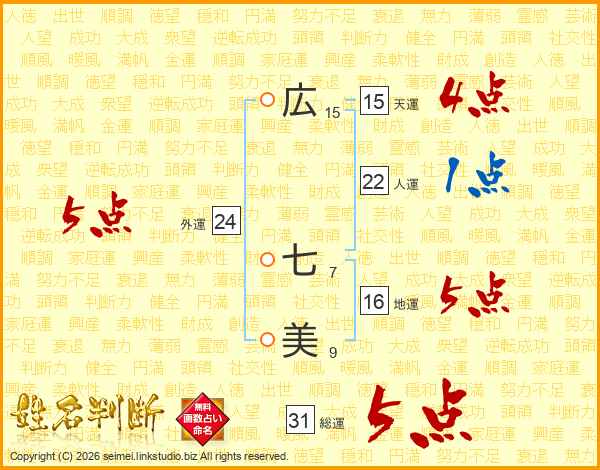 広(15画) 七(7画)美(9画)