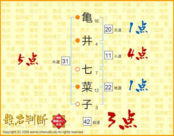 亀井七菜子さんの外運は31画の5点!