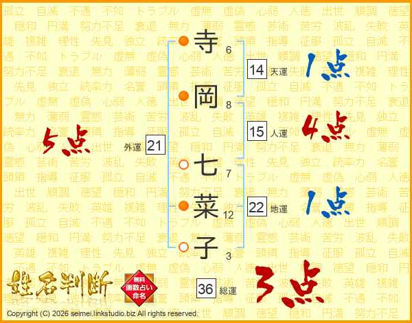 寺岡七菜子さんの外運は21画の5点!