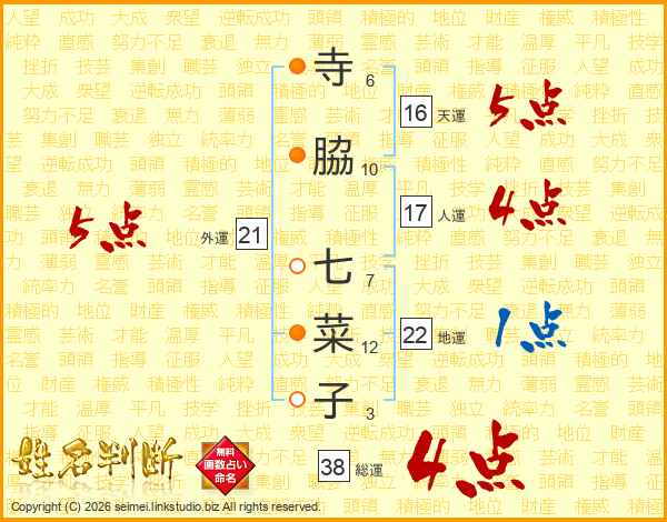 寺脇七菜子さんの総運は38画の4点!