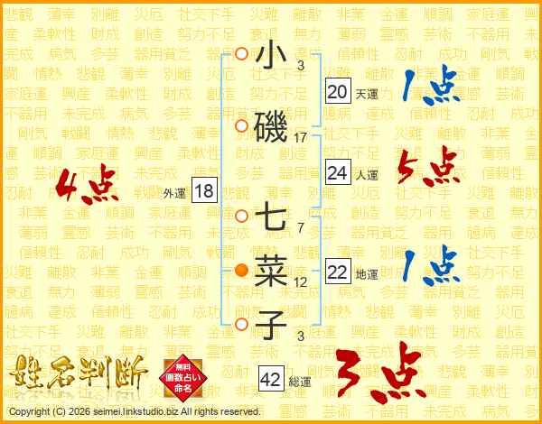 小磯七菜子さんの外運は18画の4点!