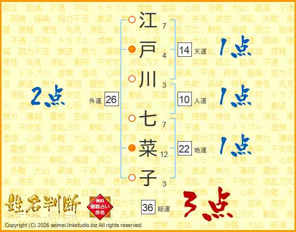江戸川七菜子さんの総運は36画の3点!