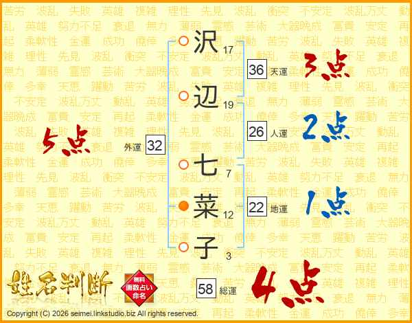 沢辺七菜子さんの外運は32画の5点!
