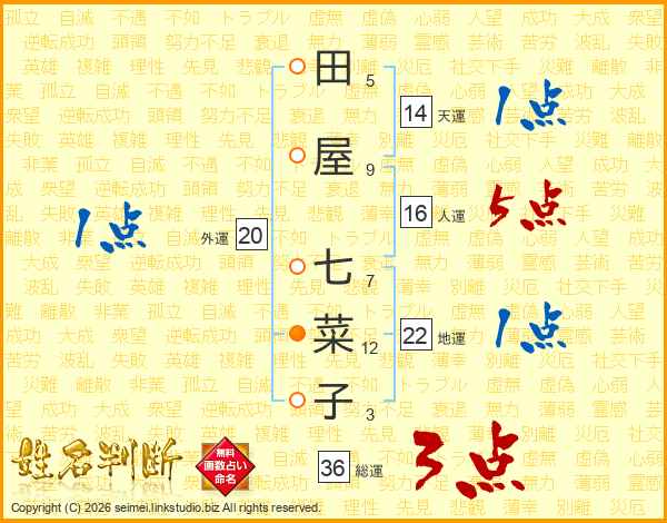 田屋七菜子さんの総運は36画の3点!