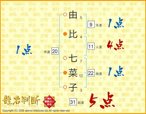 由比七菜子さんの総運は31画の5点!