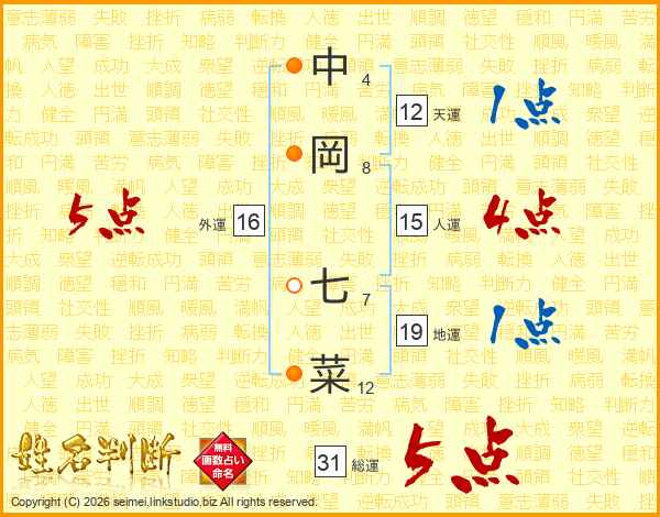 中岡七菜さんの総運は31画の5点!