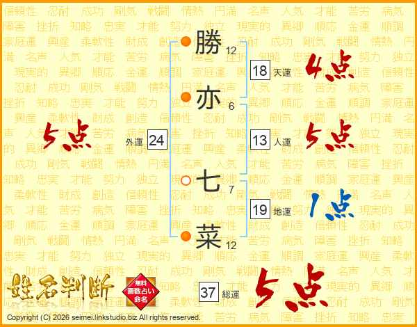 勝亦七菜さんの総運は37画の5点!