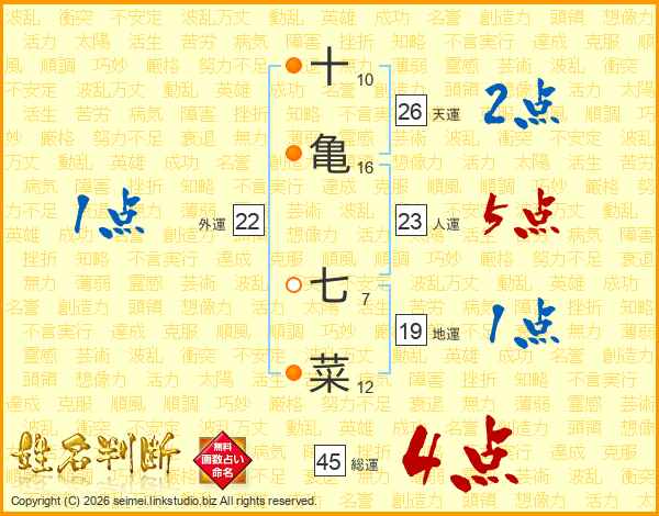 十亀七菜さんの総運は45画の4点!