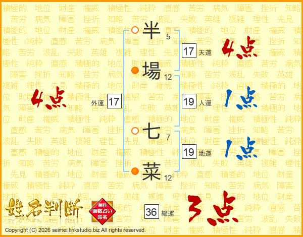 半場七菜さんの天運は17画の4点!