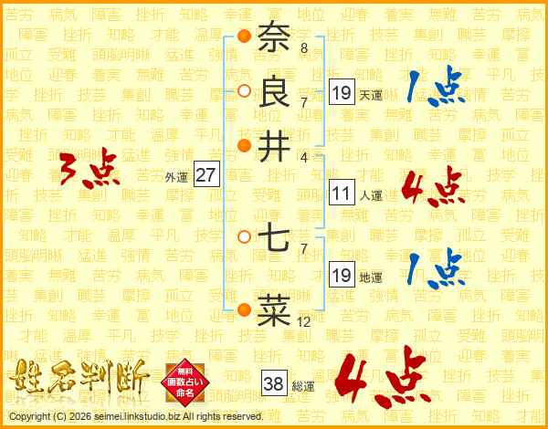 奈良井七菜さんの総運は38画の4点!