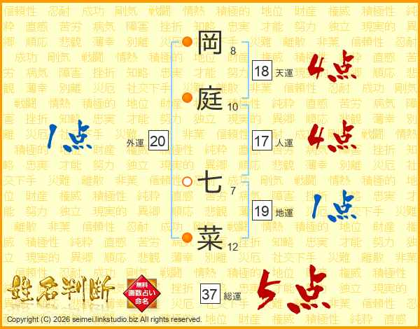 岡庭七菜さんの総運は37画の5点!
