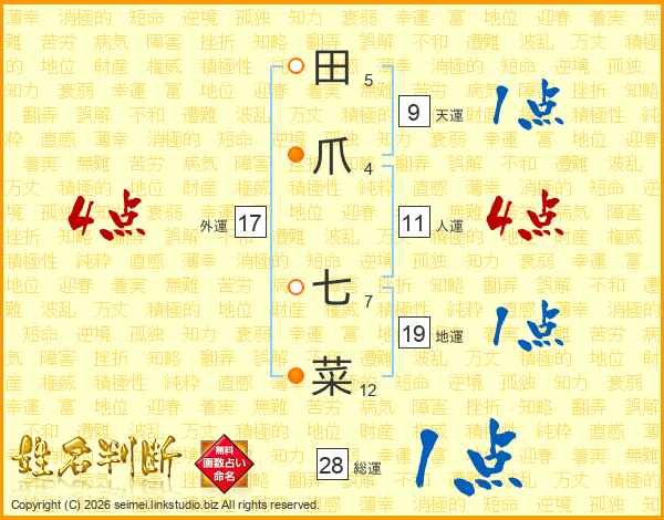 田爪七菜さんの外運は17画の4点!