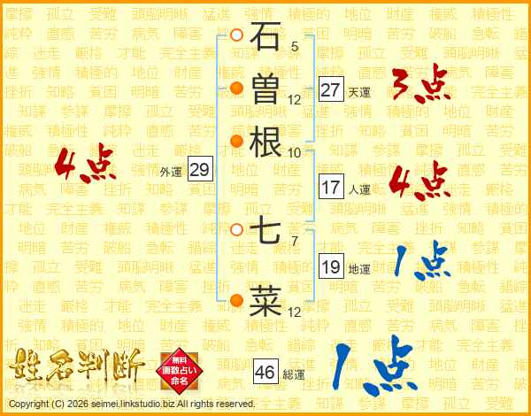 石曽根七菜さんの総運は46画の1点!
