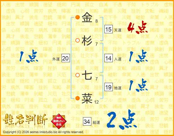 金(8画)杉(7画) 七(7画)菜(12画)