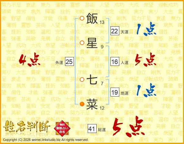 飯星七菜さんの総運は41画の5点!