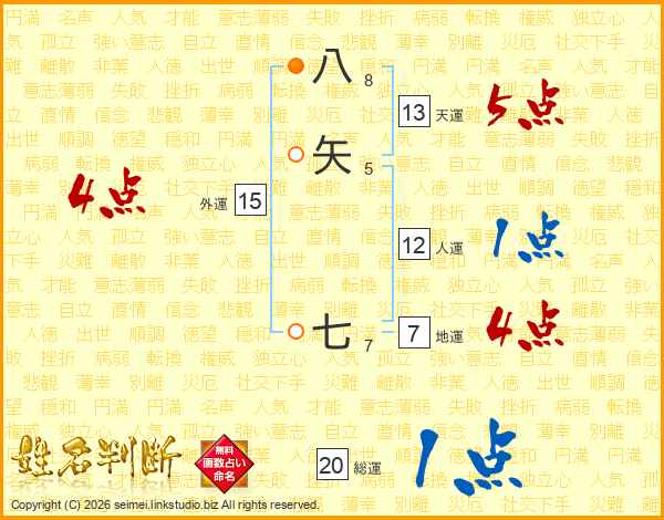 八矢七さんの総運は20画の1点!