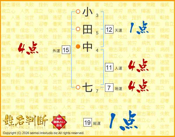 小田中七さんの総運は19画の1点!
