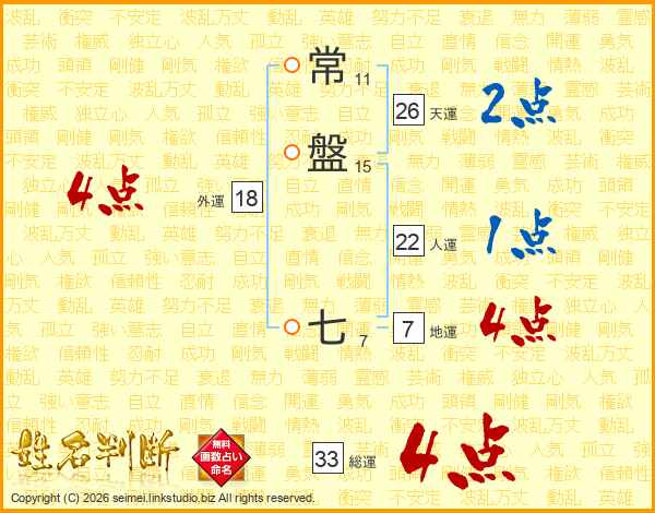 常盤七さんの総運は33画の4点!