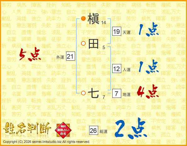 槇田七さんの総運は26画の2点!