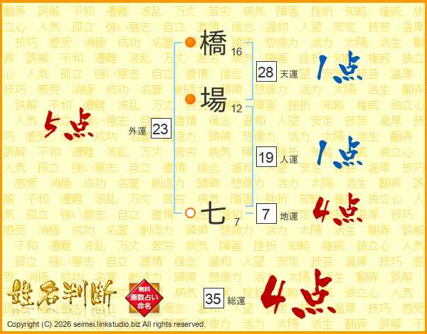 橋場七さんの総運は35画の4点!