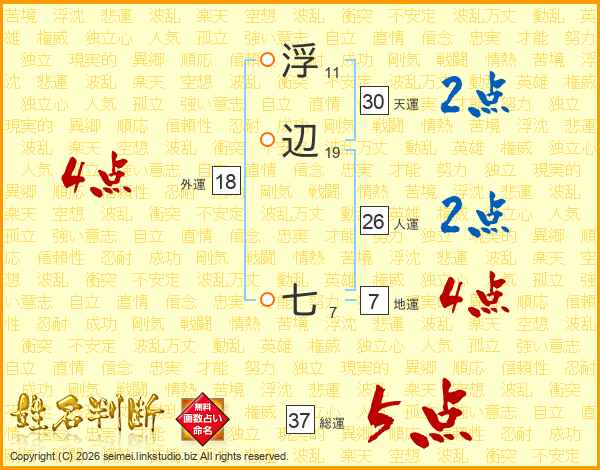 浮辺七さんの総運は37画の5点!