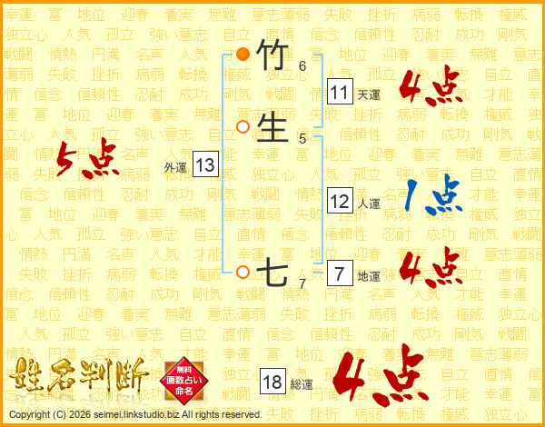 竹生七さんの総運は18画の4点!