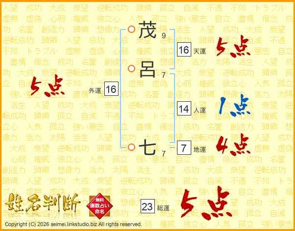 茂呂七さんの総運は23画の5点!