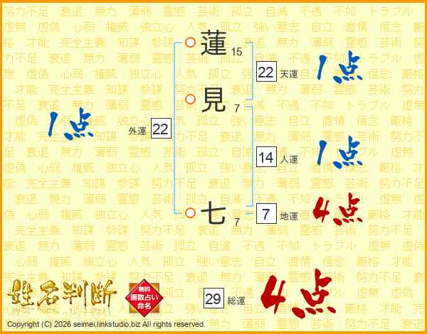 蓮見七さんの総運は29画の4点!