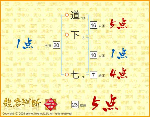 道下七さんの総運は23画の5点!