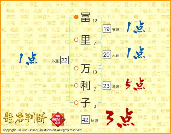 冨里万利子さんの総運は42画の3点!