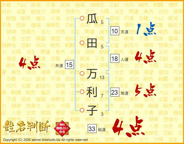 瓜田万利子さんの総運は33画の4点!