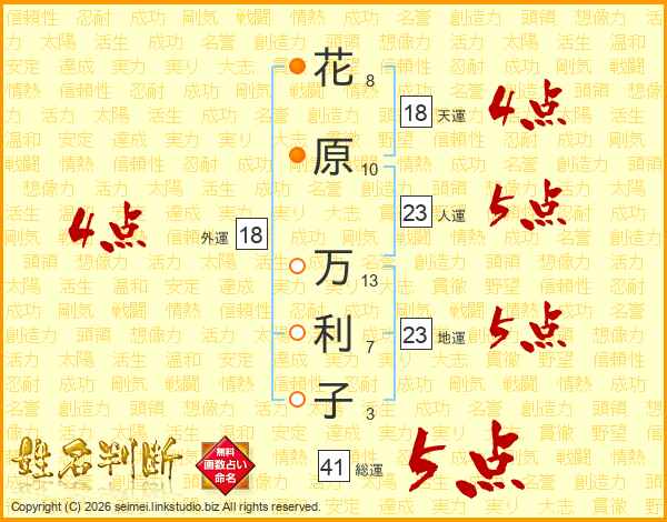 花(8画)原(10画) 万(13画)利(7画)子(3画)