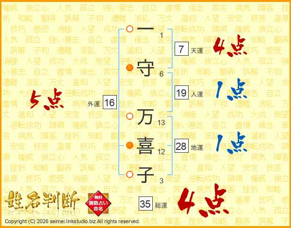一守万喜子さんの天運は7画の4点!