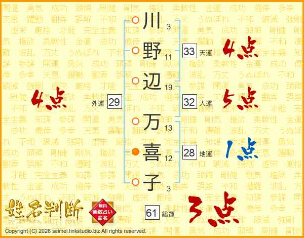 川野辺万喜子さんの天運は33画の4点!