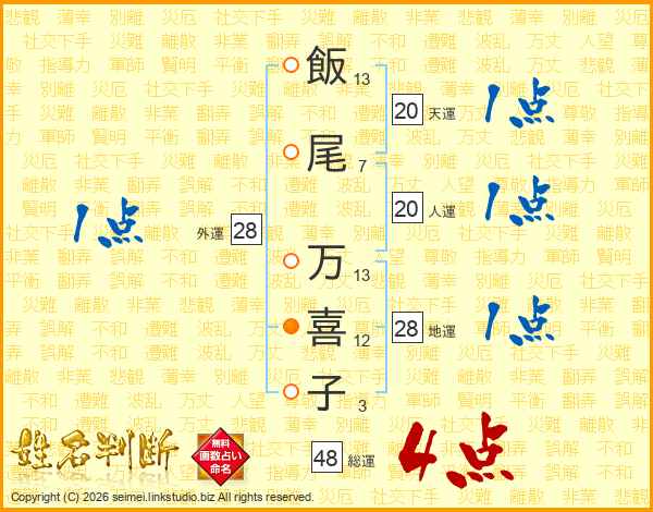 飯尾万喜子さんの総運は48画の4点!