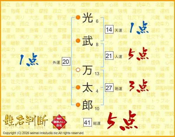 光武万太郎さんの総運は41画の5点!
