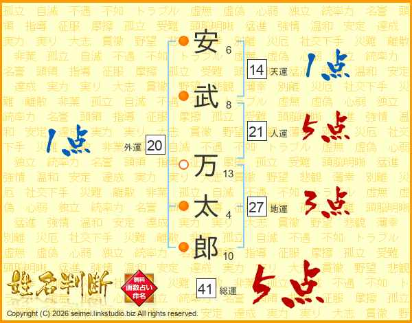 安武万太郎さんの総運は41画の5点!