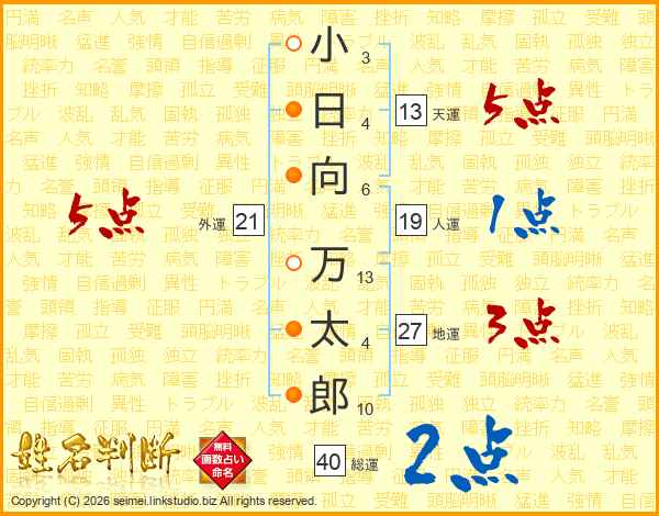 小日向万太郎さんの総運は40画の2点!