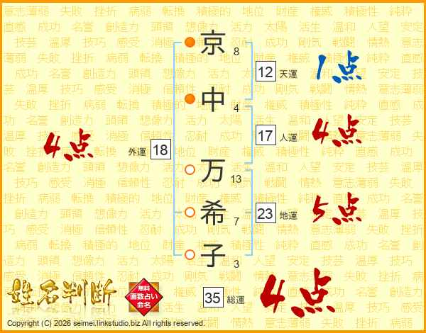 京中万希子さんの総運は35画の4点!