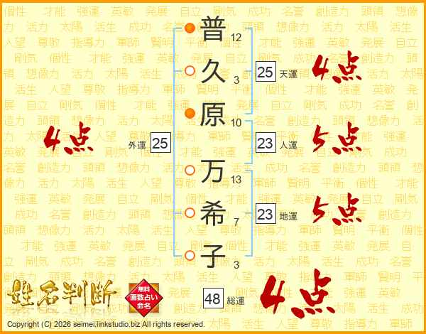 普久原万希子さんの外運は25画の4点!