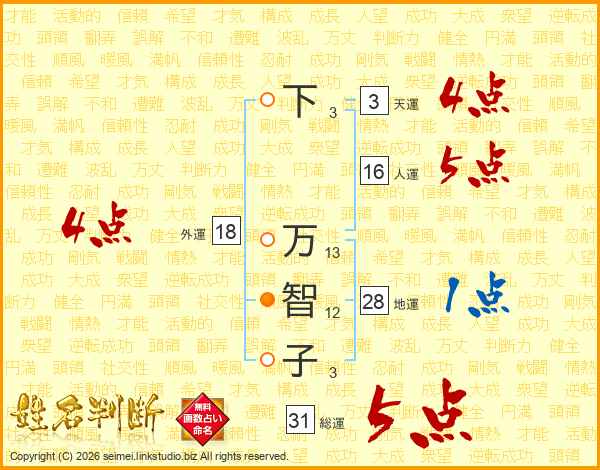 下万智子さんの総運は31画の5点!