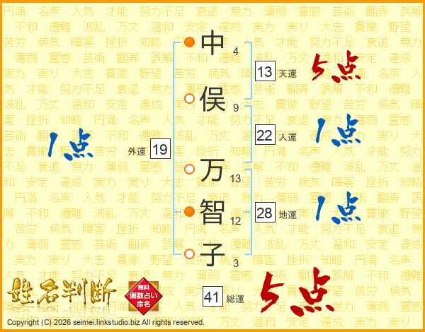 中俣万智子さんの総運は41画の5点!